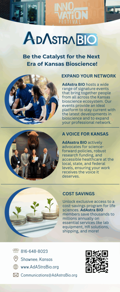 AdAstra BIO is Kansas’s leading nonprofit membership organization dedicated to building a vibrant, inclusive bioscience ecosystem. Our mission is to ignite passion and curiosity for life sciences, connecting learners, professionals, and companies to opportunities that drive innovation, economic growth, and community well-being. Join us in building a vibrant bioscience ecosystem in Kansas, where innovation meets opportunity.